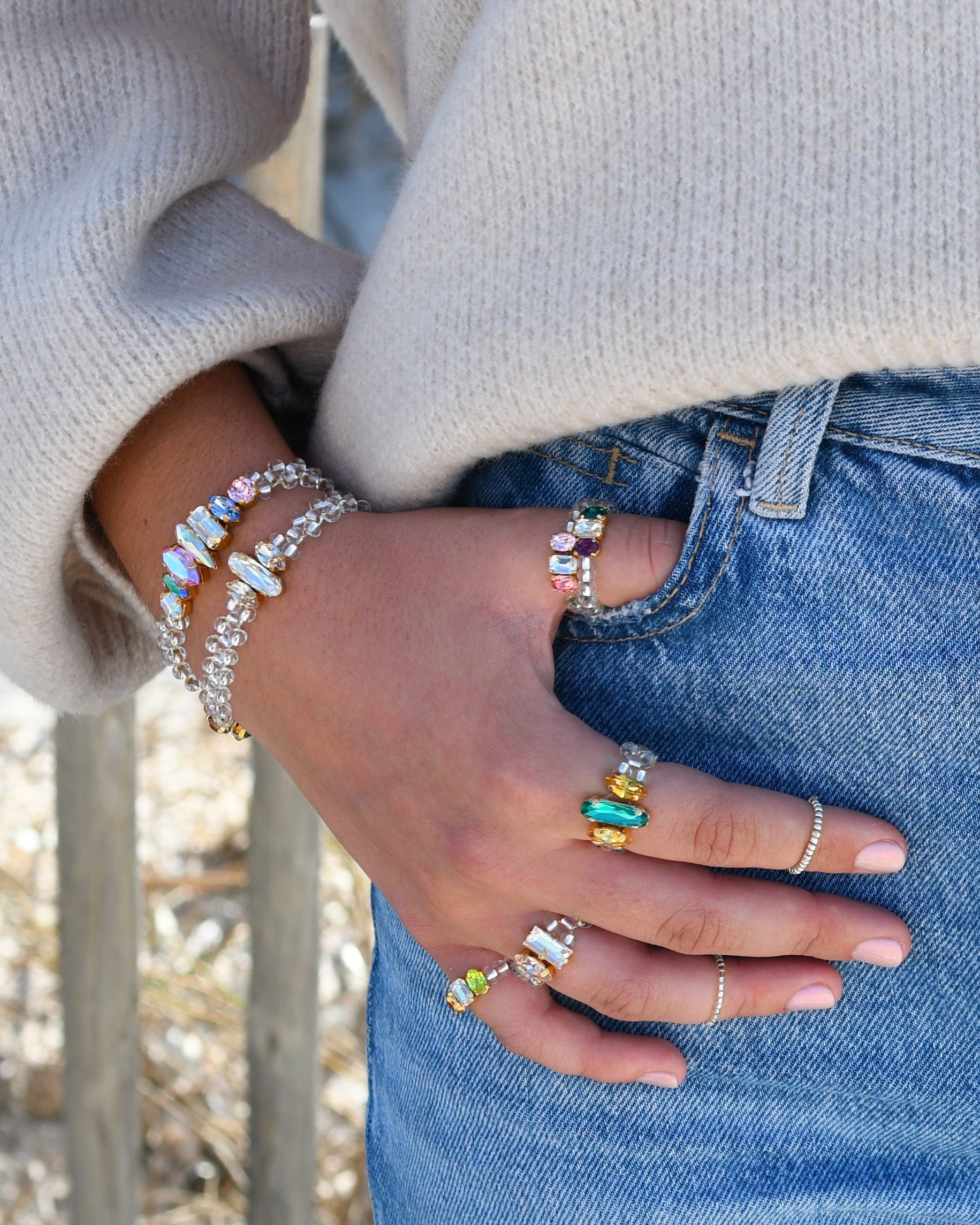 Iridescence, c’est notre toute première collection et aussi notre petit chouchou ! Avec ses bijoux aux reflets lumineux, ses cristaux éclatants et ses nuances intemporelles, elle a su traverser les saisons tout en illuminant vos looks avec douceur et élégance