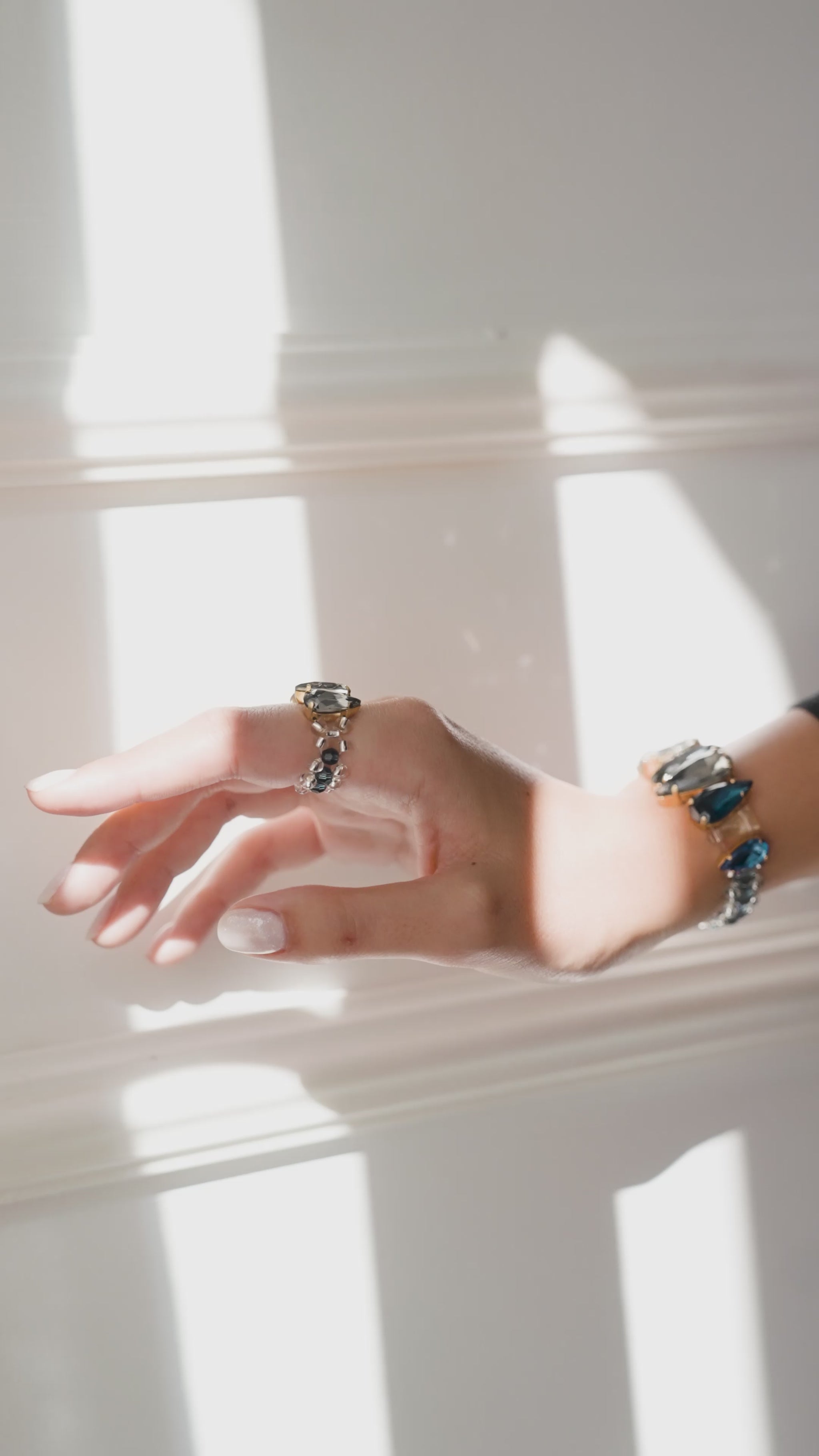 Fait main, ce bracelet bleu-gris se distingue par son éclat apaisant et intemporel.